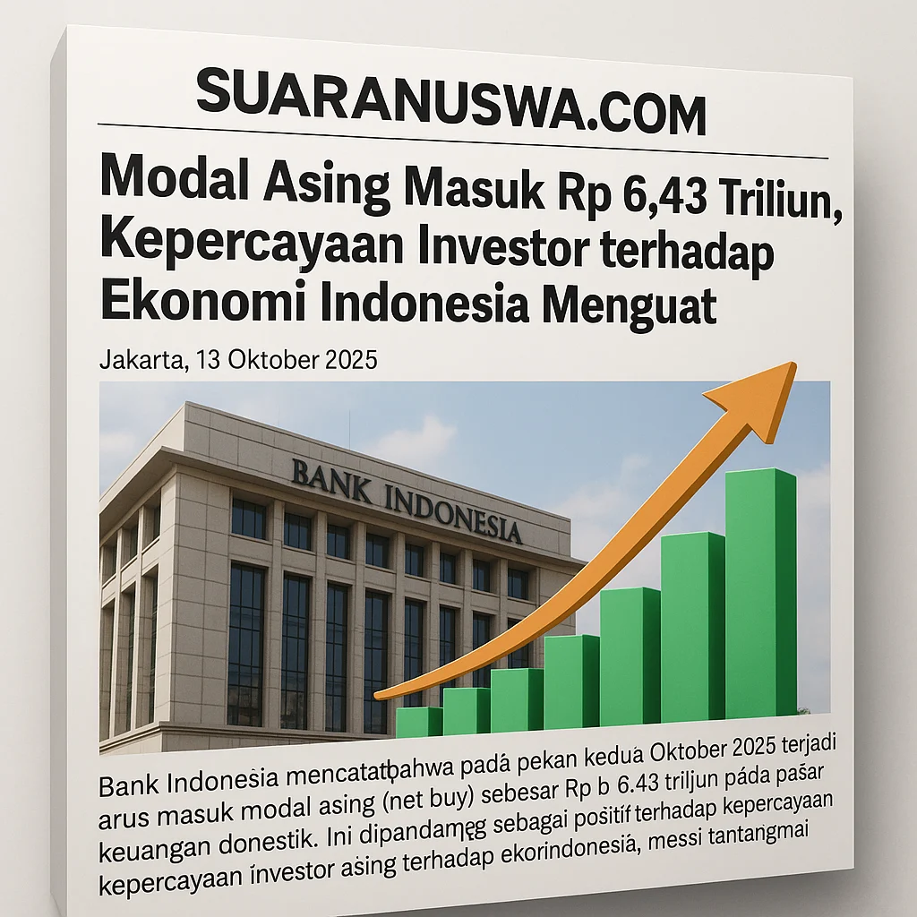 Arus masuk modal asing sebesar Rp 6,43 triliun pada Oktober 2025 menjadi sinyal positif bahwa ekonomi Indonesia masih dipercaya oleh investor global. Stabilitas rupiah, inflasi yang terkendali, serta kebijakan fiskal yang disiplin menjadi kombinasi yang menarik bagi pasar internasional.
